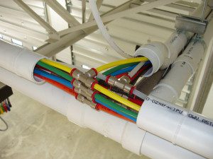 - Flexible Tubing & Fittings for interconnection from Central Chemical Dispensing System and Detail Pendant Drop. Tubing is run through a PVC Chaser up at beam level.