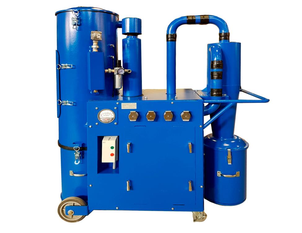 - Filtration: Initial Cyclonic pre-separator, secondary filter separator, after polyester cartridge filter (42 sq. ft. filter media) (99.93% efficient at 3 microns or larger) and final manual compressed air pulse jet cleaning
