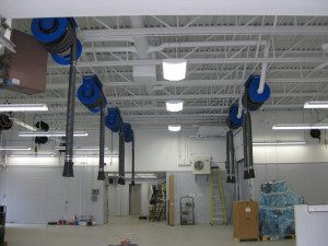 We offer a wide range of vehicle exhaust extraction products suited for a variety of facilities, such as car dealerships, transit facilities and equipment repair shops. Our vehicle exhaust solutions range from economical hose drop systems to more sophisticated and user friendly system options such as spring return hose reels, motorized hose reels and sliding suction rails.