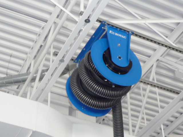 A complete Eurovac exhaust system includes adaptors for easy connection to vehicle tail pipes, exhaust fans with the appropriate air flows to ensure safe removal to the outdoors and exhaust hoses with temperatures suited to the vehicles exhaust requirements.