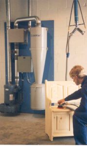 We offer a complete range of both high volume and high vacuum dust collection solutions to capture particulate right at the source of any stationary equipment or hand held tool within a woodworking facility. A dust collector with a high volume of air will be needed to capture the particulate from the source of machines such as C&C Routers, Table Saws and Planers which have vacuum take-off sizes ranging from 3” to 6”. Where as; a high vacuum system will be needed to capture dust at the source of hand held tools such as Orbital Sanders or Routers which have smaller vacuum take-off sizes ranging from ¾” to 1-1/2”.